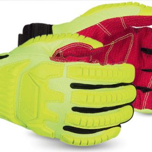 CLUTCH GEAR® ANTI-IMPACT HI-VIZ YELLOW BACK MECHANICS OILFIELD GLOVE WITH CUT-RESISTANT PALMS