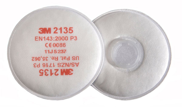 3M 2135 P3R Particulate Filters. Stand alone, lightweight particulate filters * Lightweight * Low breathing resistance * Bayonet fitting system ensures precise and safe locking * Versatility: can be used on all 3M 6000, 7000 and 7500 Series Half Masks and Full Face Masks * Maximum use concentration: 20xWEL (half mask) or 40xWEL (full face mask) * Standard: EN143  * Approval: CE marked * Workplace Exposure Limit