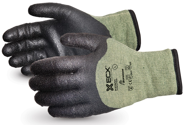 Emerald CX┬« Kevlar┬«/Steel Winter Glove with PVC PalmFEATURES* Blended Kevlar┬«/Steel knit for EN388 cut-level 5 protection* Warm and dry for jobs involving cold, wintry or wet conditions* PVC palm coat provides an excellent grip, wet or dry* Acrylic fleece lining is soft and warm* Good dexterity for a winter-lined glove* EN388: 2003* Level 4 – Abrasion Resistance* Level 5 – Cut Resistance (Coupe Test)* Level 4 – Tear Resistance* Level 2 – Puncture Resistance* EN 511: 2006* Level 1 – Convective Cold* Level 2 – Contact Cold* Level 0 – Water PermeabilityAPPLICATIONSCold storage facilitiesConstructionAgricultureUtilities