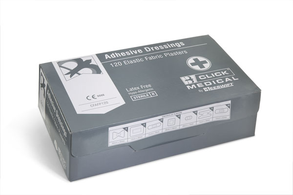 Each plaster is individually sealed to keep it sterile.Box contains 120 plasters:* 72 x 19mm(48)* 72 x 22mm(20)* 60 x 45mm(8)* 38 x 38mm(16)* 38 x 19mm(16)* 74 x 38mm(6)* 72 x 50mm(6)