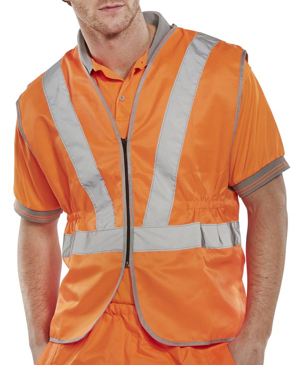 * Hi Vis “Railspec” vest* 80/20 polyester cotton fabric* Quick release studs to shoulders and sides* Zip front* Elasticated hips* Retro reflective tape* Vertical stripes to back* EN ISO 20471 Class 2 high visibility * RIS-3279-TOM – Railway use certified